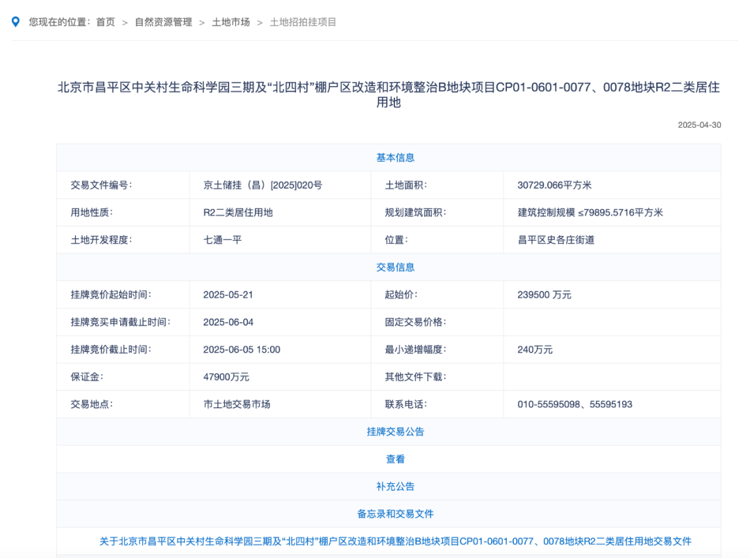 三、市昌平区中关村生命科学园三期及“北四村”棚户区和整治B地块项目CP01-0601-0077、0078地块。南侧紧邻大型贸易分析体超极合生汇,总地盘面积达到7.97万平方米。